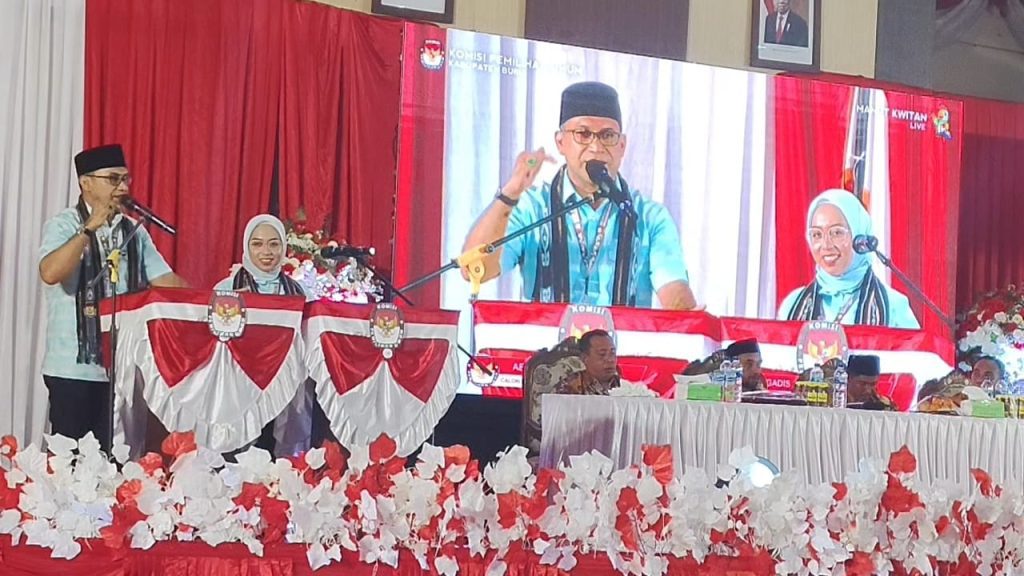 Media Analis Indonesia, Buru – Pasangan Calon (Paslon) Bupati dan Wakil Bupati Buru periode 2024 – 2029, Aziz Hentihu – Gadis Siti Nadia Umasugi mendapat nomor 3 dalam pengundian nomor urut pasangan calon yang diselenggarakan KPU di Aula Kantor Bupati Buru Senin (23/9/2024).