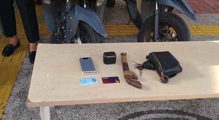 Polisi turut mengamankan barang bukti berupa sepeda motor milik pelaku, sepeda motor korban, tas pinggang, ATM, HP, serta sebilah badik yang digunakan dalam aksi tersebut.