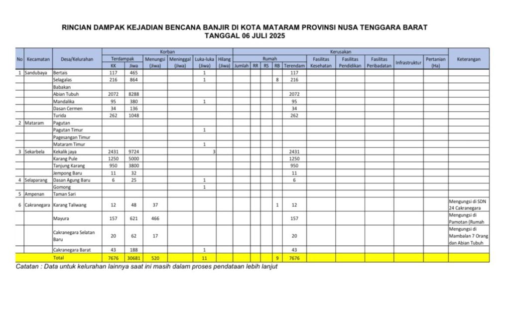 # Tujuh Wilayah Terparah di Kota Mataram