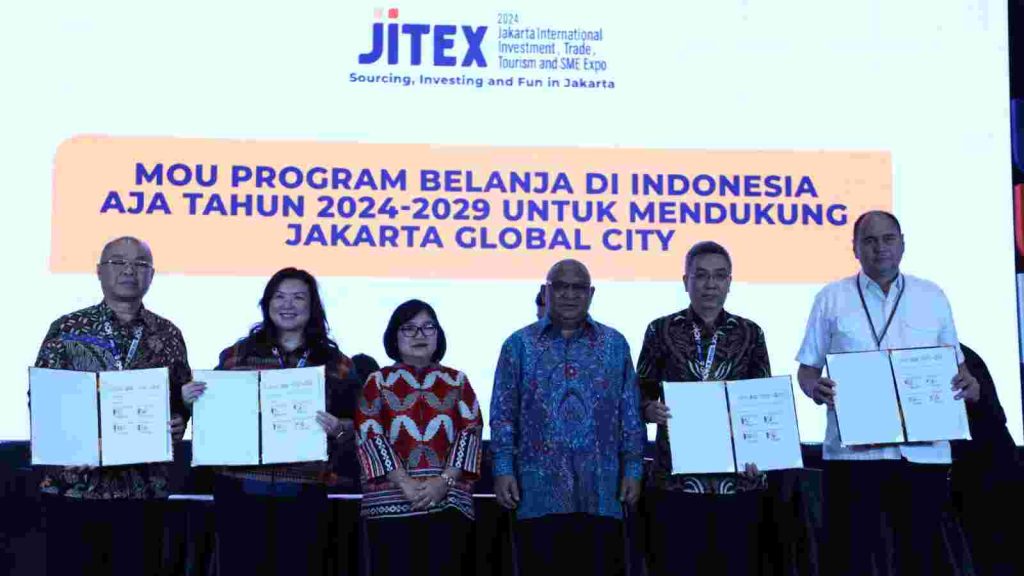 Media Analis Indonesia, Jakarta – Pada hari kedua penyelenggaraan Jakarta International Investment, Trade, Tourism, and SME Expo (JITEX) 2024, digelar diskusi terkait pengembangan Jakarta sebagai Kota Meetings, Incentives, Conventions and Exhibitions (MICE) Global. Dalam sesi ini dilakukan penyampaian paparan serta dukungan terhadap Jakarta sebagai Kota Global, dan penandatanganan MoU program Belanja di Indonesia Aja Tahun 2024-2029 untuk Mendukung Jakarta Global City.