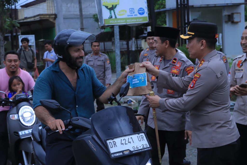Kegiatan tersebut diawali dengan pembagian takjil kepada masyarakat pengendara/ pengguna jalan di depan Mapolres sebagai wujud rasa syukur sekaligus bentuk penghormatan kepada umat Muslim yang tengah menjalankan ibadah puasa Ramadhan.