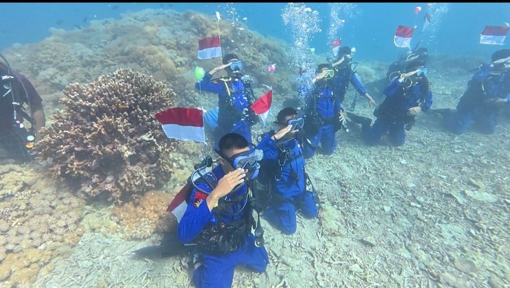 Media Analis Indonesia.Lombok Timur, NTB — Ada yang istimewa dalam peringatan HUT ke-80 Kemerdekaan RI di Lombok Timur tahun ini. Bendera Merah Putih tidak hanya berkibar di darat, Ahad (17/8/2025), tetapi juga gagah menjulang di tengah laut perairan Gili Petagan.