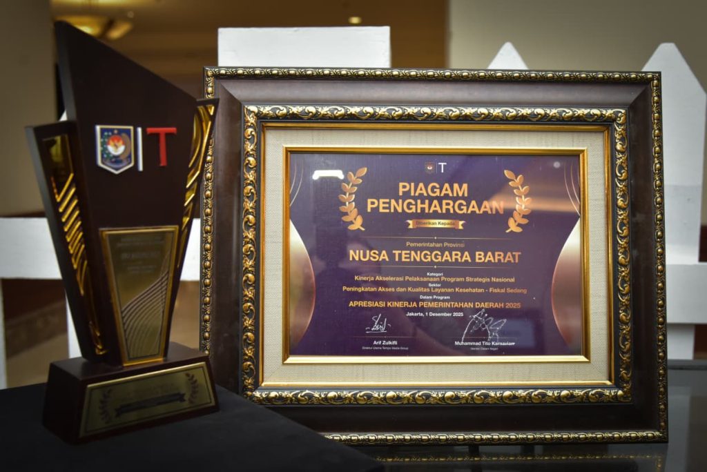 Media Analis Indonesia.Jakarta – Provinsi Nusa Tenggara Barat (NTB) kembali menorehkan prestasi gemilang dengan meraih penghargaan sebagai Pemenang Kategori Perbaikan Akses dan Kualitas Pelayanan Kesehatan Tingkat Provinsi dengan Fiskal Sedang pada Malam Apresiasi Kinerja Pemerintah Daerah Tahun 2025. Penghargaan ini diserahkan langsung oleh Menteri Dalam Negeri (Mendagri), Tito Karnavian, di Hotel Borobudur, Jakarta, pada (1/12/2025).