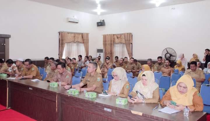 Rapat dipimpin langsung oleh Sekdakab Palas dan didampingi oleh Asisten I dan Asisten III, staf khusus Plt. Bupati Palas serta Unsur Forkopimda Kabupaten Palas dan undangan lainnya.