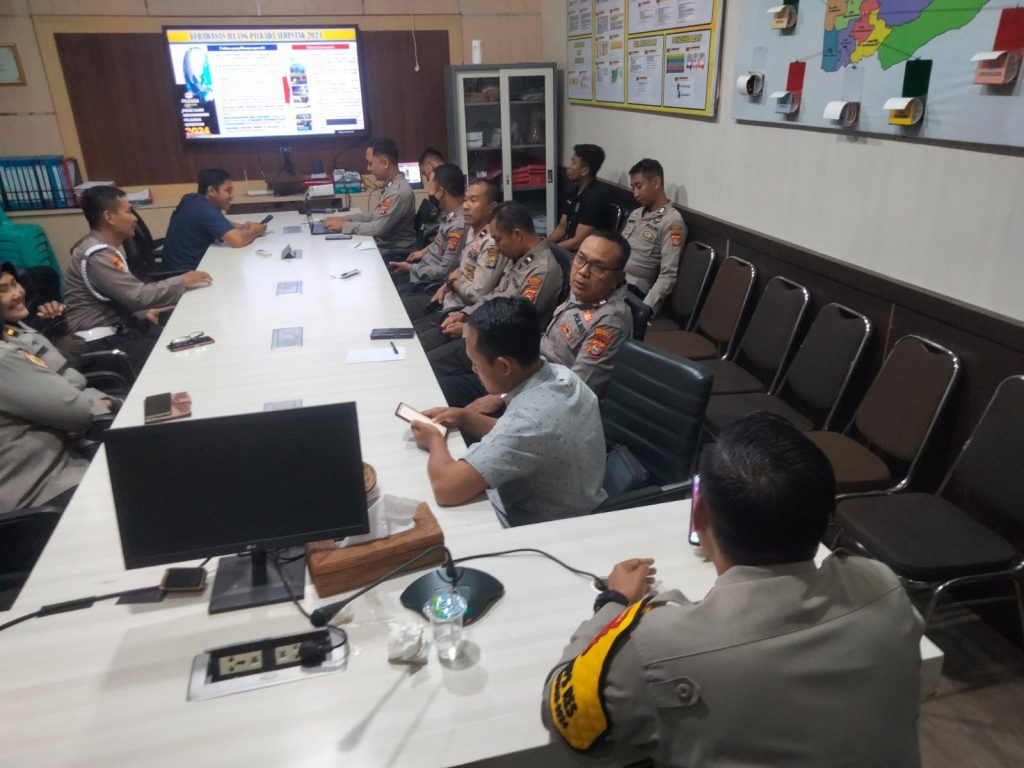Media Analis Indonesia, Mataram – Menjelang pengamanan tahapan Pemilihan Kepala Daerah (Pilkada) 2024 Serentak Polresta Mataram Polda NTB mengikuti bimbingan teknis (Bimtek) Cooling System kegiatan rutin yang ditingkatkan (KRYD) secara Zoom Meeting di ruang Bag Ops Polresta Mataram, Selasa, (23/07/2024).
