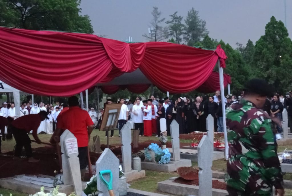 Usai memberikan sambutannya Prabowo dan rombongan meninggalkan padepokan pencak silat TMII, selanjutnya tepat pukul 16.00 jenazah diberangkatkan ke tempat peristirahatan terakhirnya di Taman Makam Pahlawan Kalibata dengan diiringi upacara militer.
