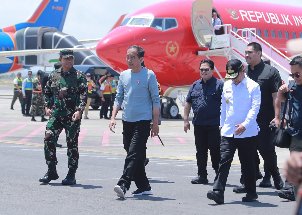 Turun dari pesawat kepresidenan, Presiden Jokowi langsung menapaki karpet merah yang telah disiapkan. Senyum ramahnya terlihat saat menyapa para pejabat yang menyambut kedatangannya. Usai seremoni penyambutan singkat, Presiden langsung bertolak menuju Mandalika, untuk menyaksikan hari terakhir balapan MotoGP 2024.