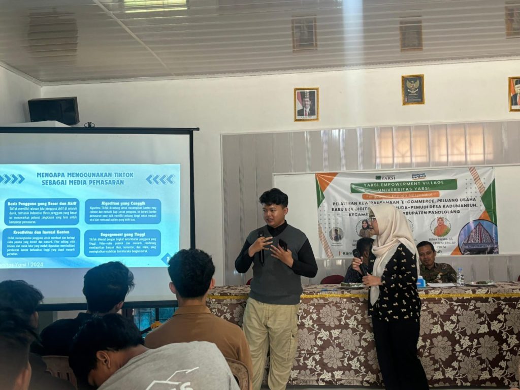 mengadakan kegiatan Pengabdian Kepada Masyarakat dengan tema Pelatihan Kewirausahaan “E-Commerce, Peluang Usaha Baru Era Digital” Bagi Pemuda-Pemudi Desa Kadumaneuh, Kecamatan Banjar, Kabupaten Pandeglang Banten, kegiatan ini berlangsung pada Kamis (25/7/2024).