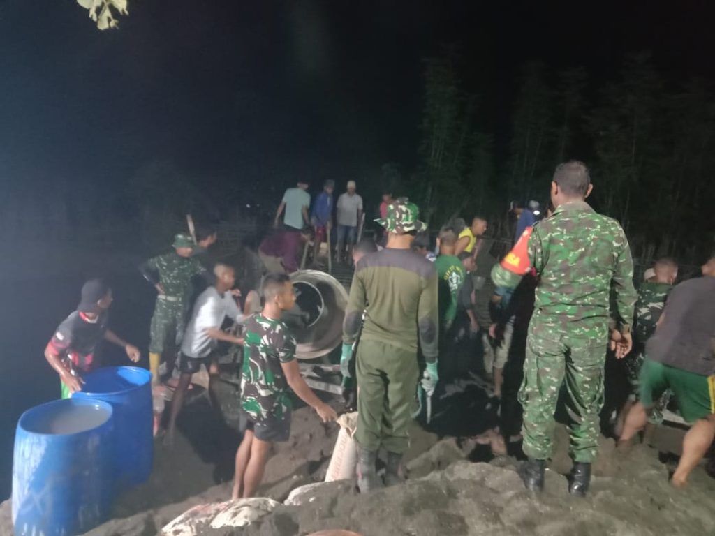 Media Analis Indonesia, Sumbawa Barat – Satuan Tugas Tentara Manunggal Membangun Desa (Satgas TMMD) ke- 123 Kodim 1628/Sumbawa Barat melaksanakan kerja lembur agar pembangunan jembatan dan pengecoran jembatan jalan usaha tani tepat waktu penyelesaiannya, bertempat di Dusun Jorok Tiram Desa Batu Putih Kecamatan Taliwang Kabupaten Sumbawa Barat, Kamis (06/03/25) Pukul 21,00 Wita.